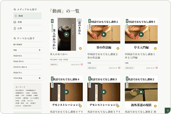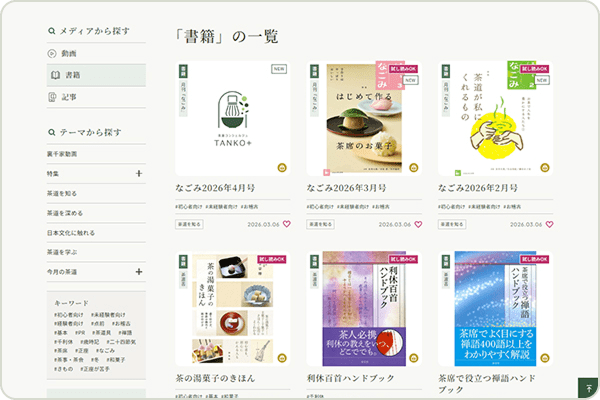 カテゴリーやタグ、キーワード検索も活用して、自在にアクセスしてみてください。 学ぶ楽しみや発見する喜びを、茶道に携わるすべてのみなさまと共有できる場所を目指しています。