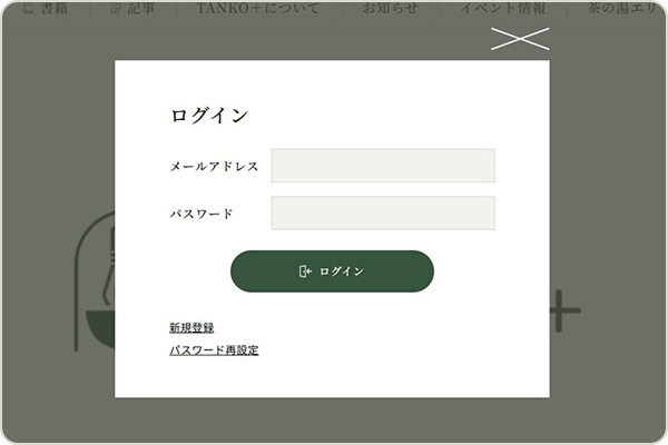 「ログイン」ボタンをクリックして、メールアドレスとパスワードを入力してください。