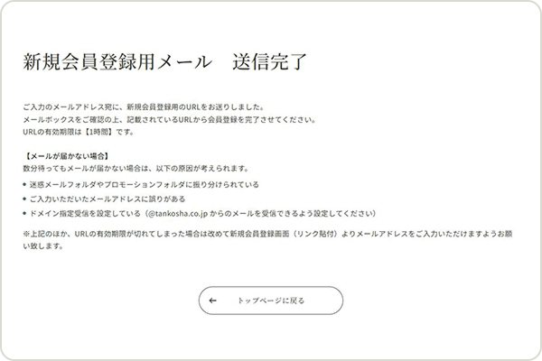本登録用のURLをお送りします。送信先のメールアドレスを入力の上、送信ボタンを押してください。メールが届いたら、メール内のURLをクリックして、本登録画面におすすみください。
