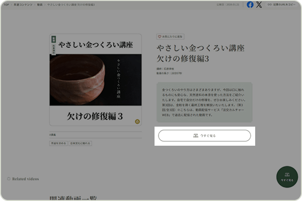 詳細ページの「今すぐ見る」ボタンをクリックすると、再生画面が表示されます。