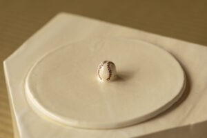 は: はい。ジャイアンツファンの先輩と企画し、実際に選手が使用していた硬いメープル材のバットを、職人さんに頼んで棗(なつめ)や蓋置、花入に仕立ててもらったんです。さらに、茶碗は自分たちでヘルメットの絵付けをしたり、ボール形のお菓子をデザインしたり、本当に遊び心満載で(笑)。茶道って、こんなふうに「自分の好きなもの」をテーマに自由に楽しめるんだ、ということを発見できました。