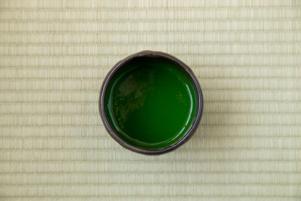 濃茶は、抹茶を多めに入れ、湯を少なめにして練るように仕上げます。泡は立てず、とろりとした質感になります。味わいは濃厚で、甘みや旨味が強く感じられます。