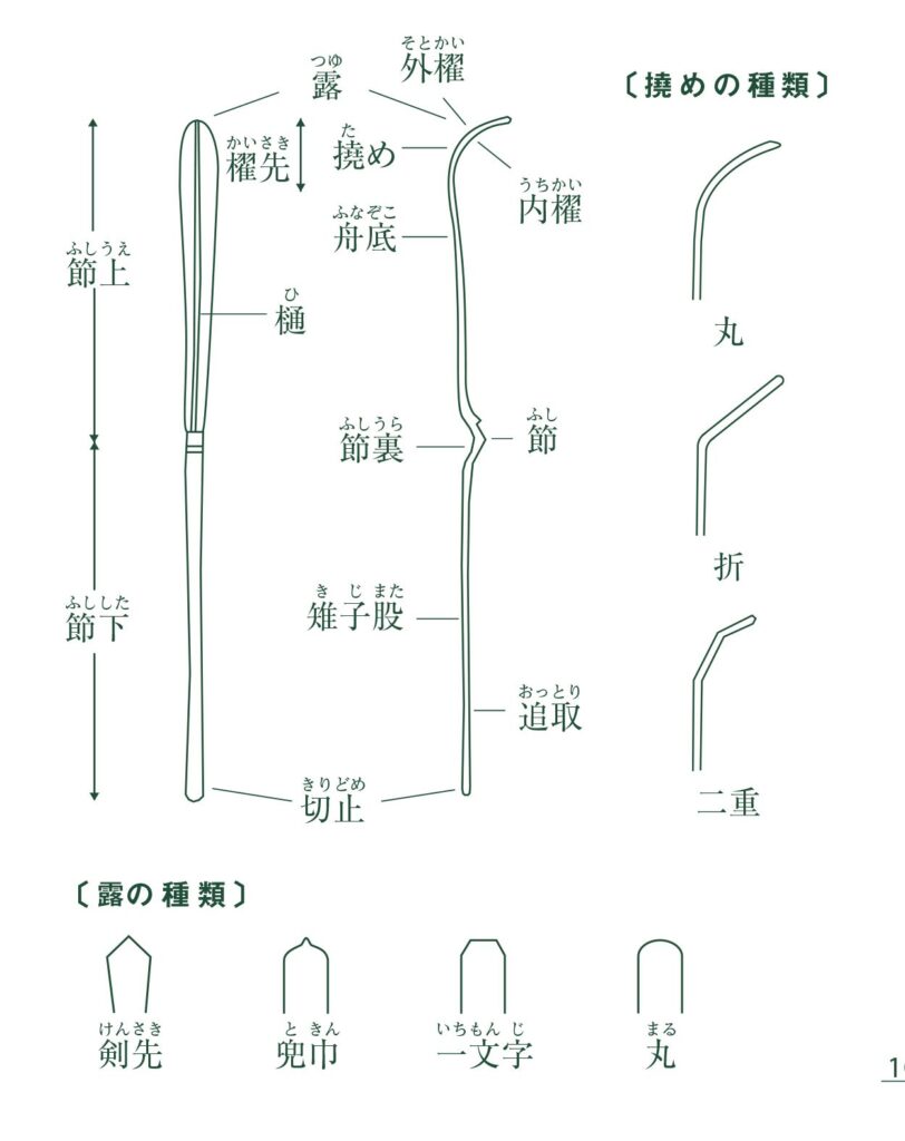 撓(ため) 匙状に湾曲した部分。丸撓・二重撓などがあります。