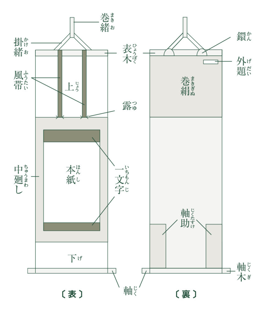 掛物は一枚の紙のように見えますが、このように多くの部分によって構成されています。