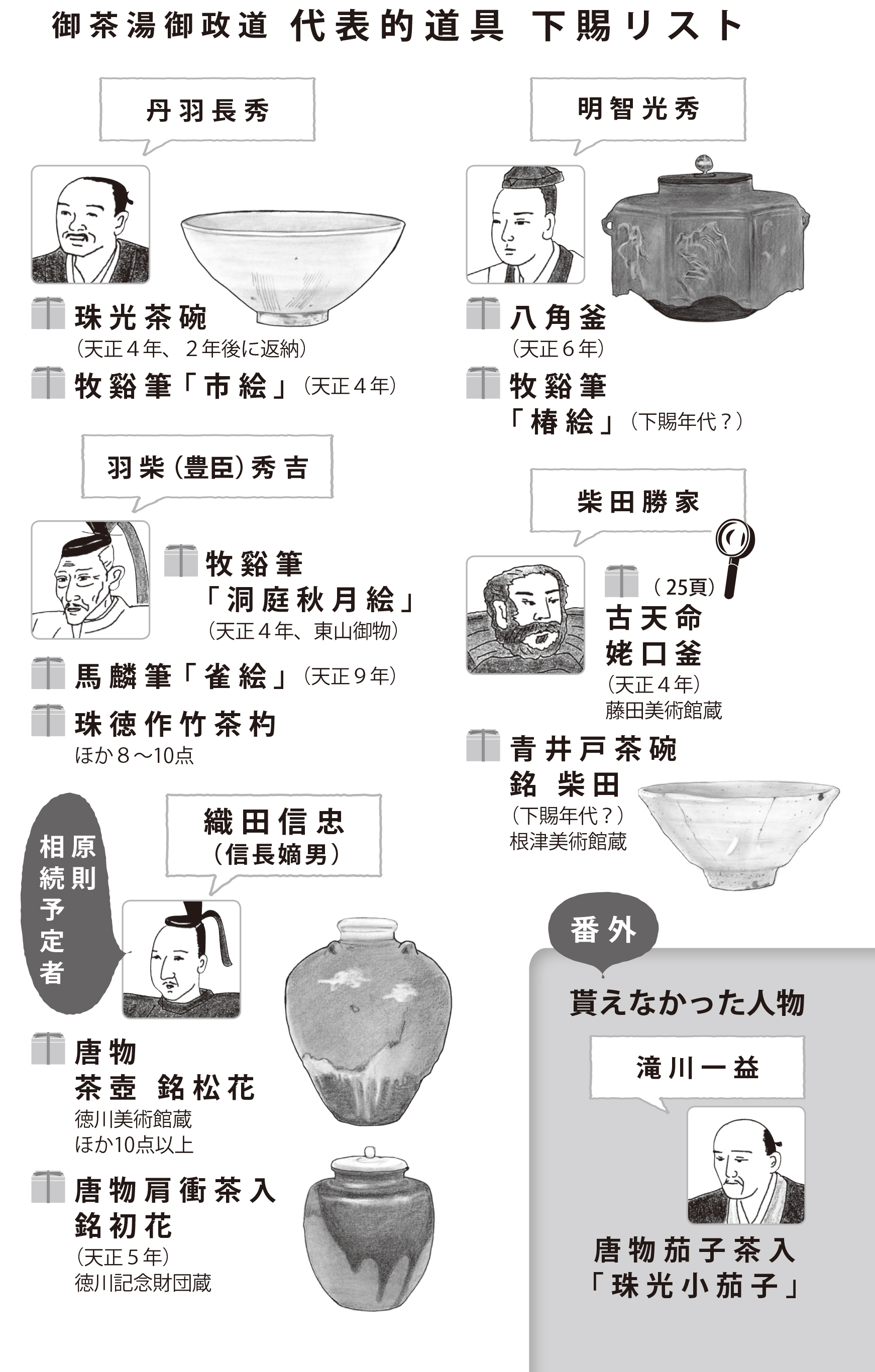 土地は統治のための権力であり、名物は主君との関係性を示す象徴です。その与奪は信長の判断に委ねられていました。名物は財産ではなく、立場を示す証として扱われていたと考えられます。