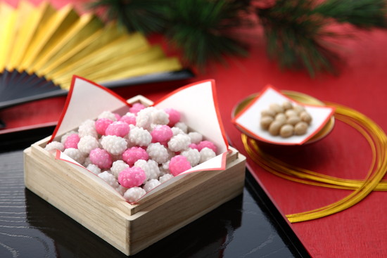 12月の季節限定品は新春に向け、紅白のお色でお作りした「究極の宝来豆の金平糖」。