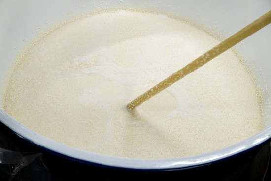 年醪(もろみ)の櫂(かい)入れの様子