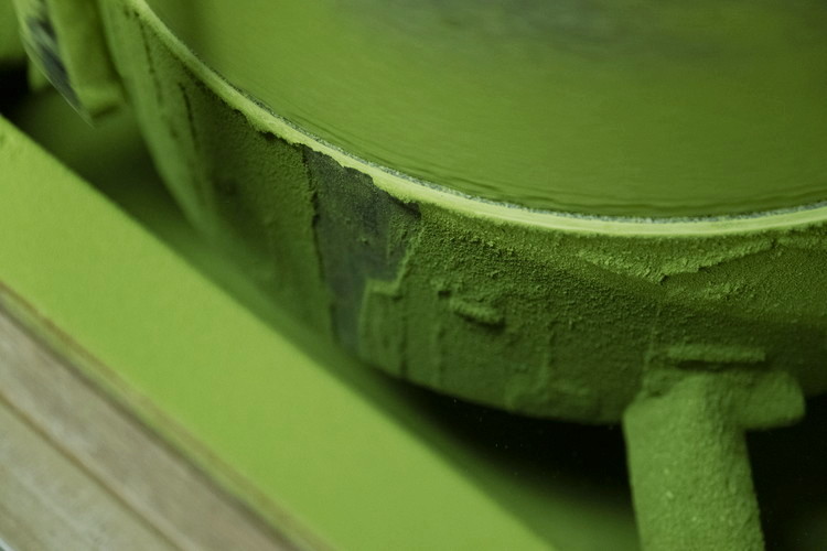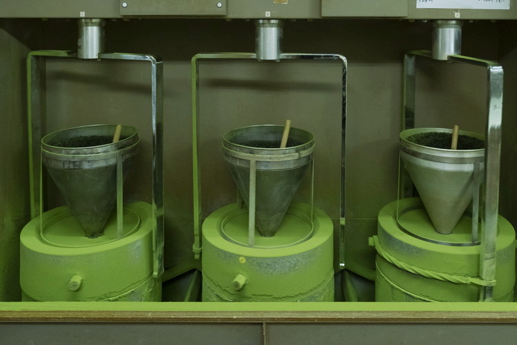 店奥の石臼で挽くでき立ての香り高い抹茶。