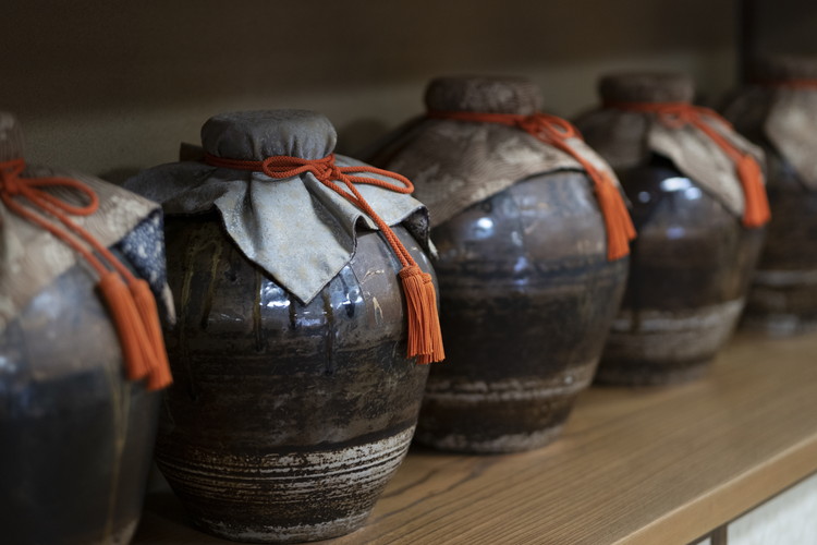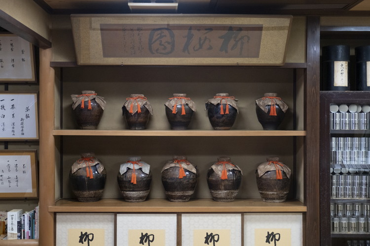 店内で存在感を放つかつて使われていた茶壺たち。ズラリと並ぶ様は、老舗の茶舗ならでは。