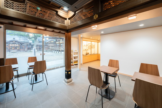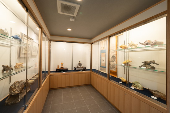 令和7年に新しくなった参拝者用の休憩所には、いのししの焼き物や掛物なども展示されていて落ち着いた時間を過ごすことができます。