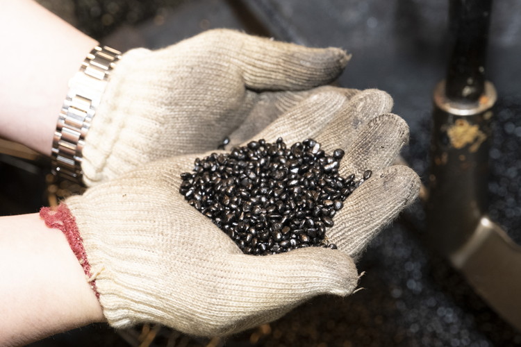 創業以来、80年以上稼働し続ける釜。細かな黒い石は研磨されて小さくなった川の石で、熱を媒介して栗をじっくりと丁寧に焼き上げていきます。