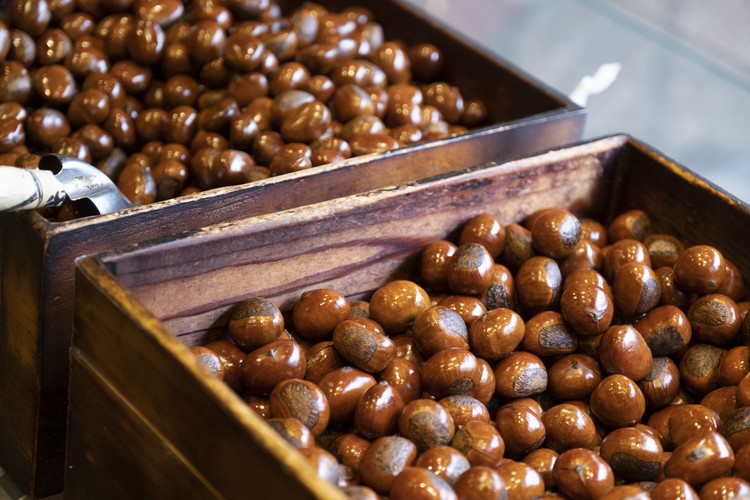 店頭には焼きたてが並べられます。甘栗は数日経っても腐ることはありませんが、美味しく味わいたいなら“購入した日を入れて3日目まで”をおすすめします。冷蔵庫では乾きすぎるので、常温で置くといいそうです。