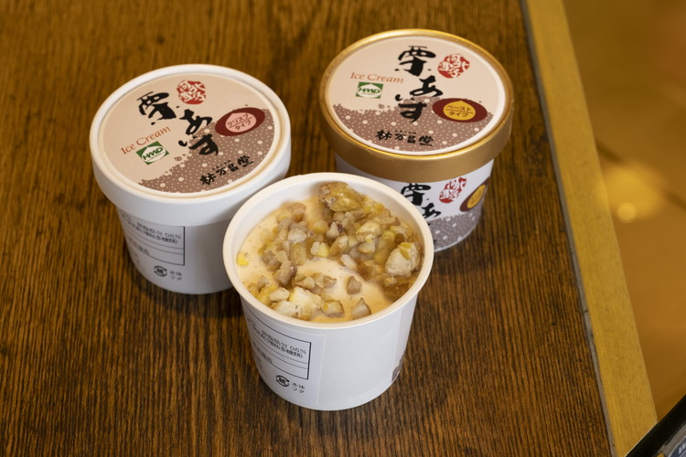 鎌倉時代には、一遍上人の四条道場があったとされる歴史ある場所で、創業当時より変わらず営みを続けています。栗には葉酸が多く含まれ妊娠中毒症にも効くと言われることから、安産のお参り後に買って帰る人もいるそう。