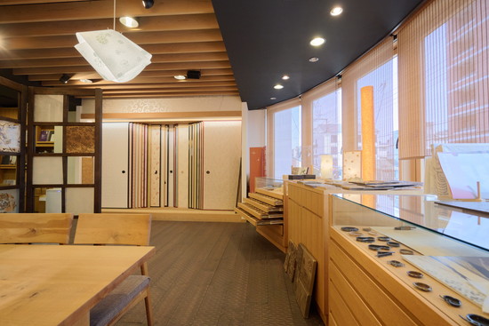 実際に住空間に取り入れた様子がイメージできるショールーム。唐紙から引手金具、襖縁などの材料も、実物を見て選ぶことができます。(予約制)