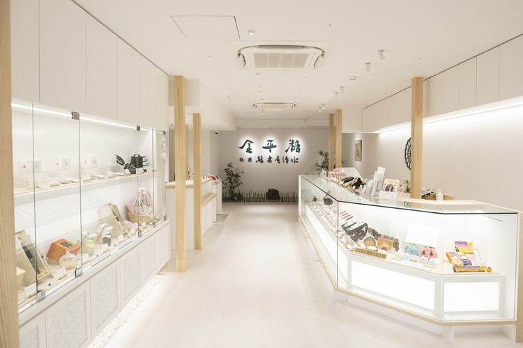 金平糖の形に似ており、縁起の良い意味をもつ「麻の葉」をモチーフに、白と白木を基調にした店内は高いデザイン性を感じさせる佇まい。多くの方々に永く、広く愛されるようにという想いが込められています。