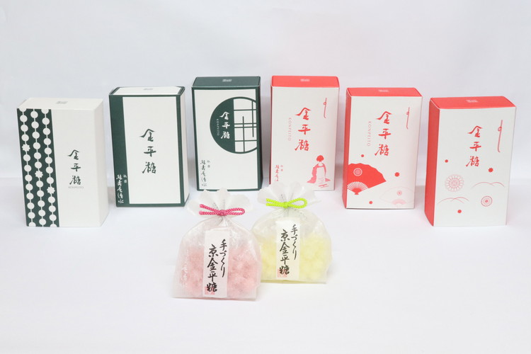 「花の紋」(檸檬の金平糖・天然水サイダーの金平糖)、「丸格子」(蜜柑の金平糖・生姜の金平糖)、
