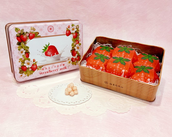 厳選された苺のほんのりとした甘酸っぱさとジャージー牛乳のまろやかなお味が楽しめる人気の金平糖です。