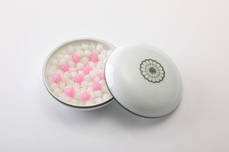 ご皇室ではご慶事の際にフランス語で「砂糖菓子を入れる菓子器」を意味する「ボンボニエール」と称される器に金平糖をお入れになり、引出物として贈られます。