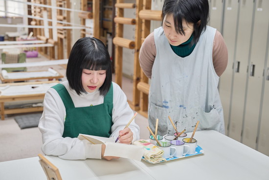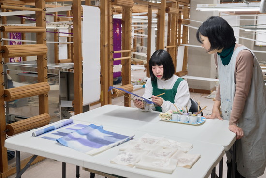 友禅染体験では、これまでに小学生から高齢者、外国の人々にまで老若男女が興味を持って訪れています。「日本人の衣装なのに、遠くから『いいな』と見てるだけの着物ではなく、ハードルを下げて『構えなくてもいいんだよ』と伝えたい」武子さんと摩紀さん。「会社に来てもらって、ここで作っている様子や商品を実際に見てもらい、着物のバックグラウンドを知ってもらい、その上で体験していただきますが、まずは楽しんでいただいて親しみを持ってもらいたいです」。