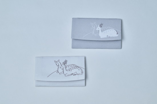 同じくONE TONEシリーズのがま口各種(写真上・中)。お財布としてはもちろん、小物入れとしても使えます。名刺入れ(写真下)は神様の使いとされる鹿をデザインしています。