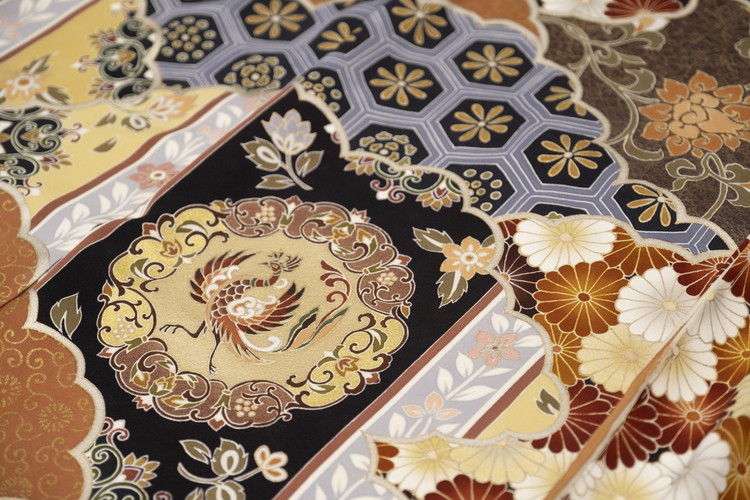 江戸時代に、扇絵師・宮崎友禅斉によって生み出された手描き友禅。企画・図案(草稿)・下絵(青花)・糊置・伏せ糊・地染め(引き染め)・蒸し・彩色(挿し友禅)・蒸し・金・刺繍と、一反の白生地を染め上げるまでの工程は10以上もあり、昔も今も全て分業で行われます。 岡山工芸は、共に友禅の手描き友禅職人で、「京の名匠」岡山耕三(現・会長)、日本初の女性伝統工芸士で「京の名工」武子の夫妻が設立。最初は委託加工から始まりましたが、取引先の様々な要望に応えていくうち、現在では企画から取りかかり、オリジナルブランドやオーダーメードの受注までを行っています。図案、色合わせ、糸目糊置、彩色などの工程を担う専門の職人を多数抱え、近年は豪華優美な着物や帯だけでなく、リーズナブルな金封袱紗やお薬手帳カバーといった小物も手掛け、手描き友禅の新たな魅力発信にも力を注いでいます。