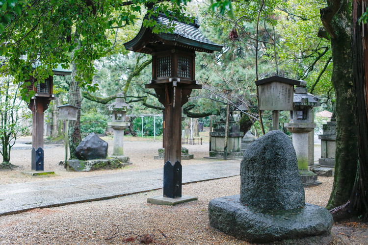 境内では松尾芭蕉の句碑や広辞苑の初版を編纂した新村出の歌碑などいくつもの石碑が見られます。