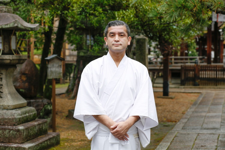 「氏子区域には伝統文化に携わる方が多く、常日頃からみなさまのご健勝とご多幸を祈念しております」と語る禰宜の小栗栖憲英さん。