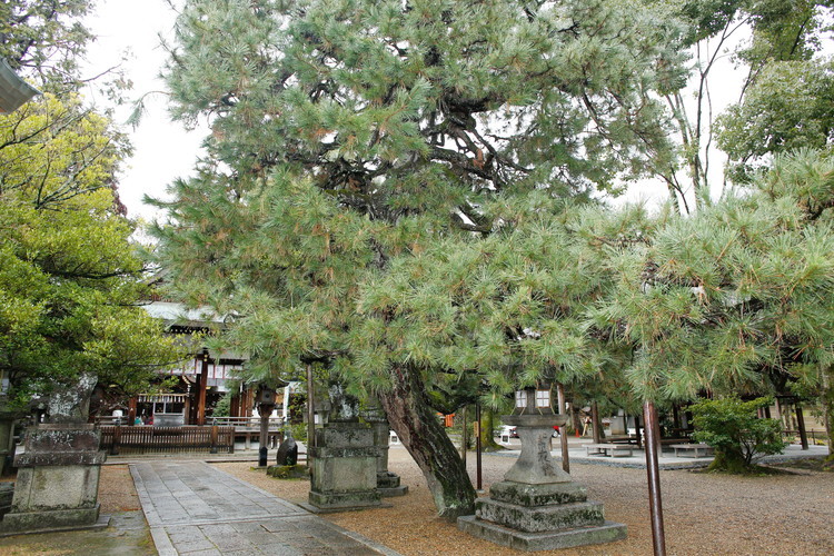 烏丸通から一筋東に建立され往時は広大な御霊の森が広がっていたといいます。御祭神は崇道天皇(光仁天皇第二皇子 早良親王)、井上大皇后、他戸親王、藤原大夫人、橘大夫、文大夫、火雷神、吉備大臣の八柱。西門の向こうに樹齢160年を数える明治天皇の御令妹ゆかりのクロマツが見えます