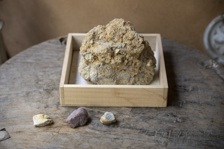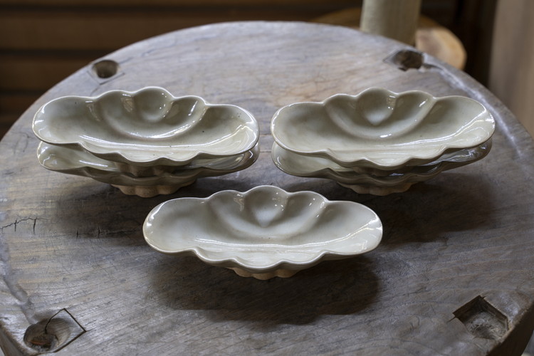 薬師寺の国宝・東塔の解体修理の際、基壇より掘り出された創建当初(約1300年前)の土を譲り受け創作した作品より。釉薬や焼成方を工夫しさまざまに変化させることで、それぞれ、味わいの違うものに仕上がっています。