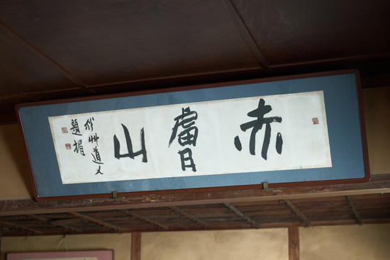 人間国宝の陶芸家・富本憲吉氏の手による扁額も。戦時中の一時期、近くの実家に疎開していた氏が香柏窯に通い来てともに窯を使用したという縁がありました。