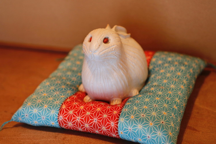 入り口で出迎えてくれるのは、陶器製のうさぎ。初代が自分の名前「卯兵衛」の「卯=ウサギ」を、いづうのモチーフにしました。