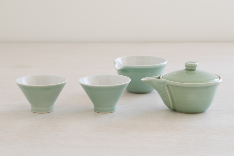 朝日窯作のオリジナル煎茶器・河濱清器(かひんせいき)。日常のひとときに、美味しいお茶を飲んでいただくことを追求した朝日焼の煎茶器。特に河濱清器はその青磁の爽やかな色合いでお茶を楽しむのに最適です。