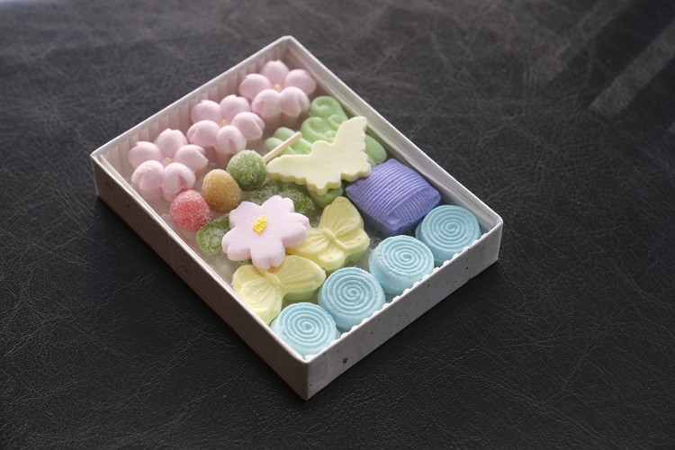 春夏秋冬の京都の景色を、愛らしいモチーフと彩りで表現した干菓子。