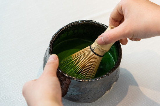 一碗一碗丁寧に、スタッフが心を込めておもてなし。薄茶だけでなく、喫茶で濃茶もいただけます
