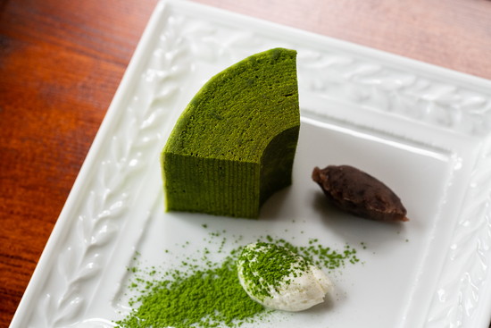 丸久小山園は、抹茶を使った菓子も早くから手掛けてきましたが、茶房で提供するスイーツにも深いこだわりが。上質の抹茶を生地に練り込んだ抹茶バウムクーヘン、濃厚な抹茶クリームが印象的な抹茶のロールケーキは、特に人気が高く、いずれもお茶とセットでいただけます。
