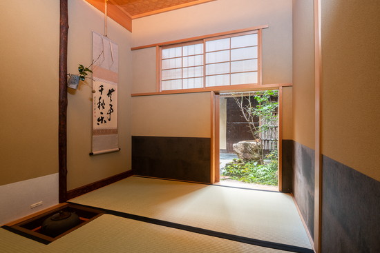 茶室「元庵」は茶房のなかに設けられた贅沢な空間。ここの中で喫茶もでき、茶室の雰囲気も味わうことができます
