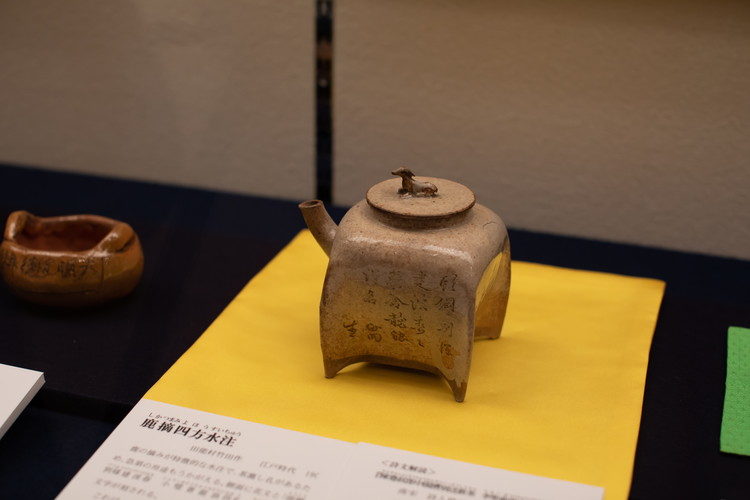 煎茶道のコーナーには名工の手になる道具が展示され、その存在感に圧倒されます。写真は田能村竹田作「鹿摘四方水注」。