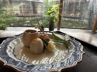 女将は毎月の茶道教室(表千家・裏千家)のほか定期的に茶事を開いています。これまで「春のひな祭り茶事」「七夕の茶事」を自ら亭主を務めて開催し、どちらも大好評でした。「お道具もいろいろ揃えており、茶事の際にお披露目いたします。お茶を通じて由緒あるお道具と出会う、その楽しさを満喫していただけると思います」