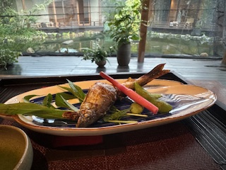 同じく「蛍の夕べ」の献立から、琵琶湖産鮎塩焼き。